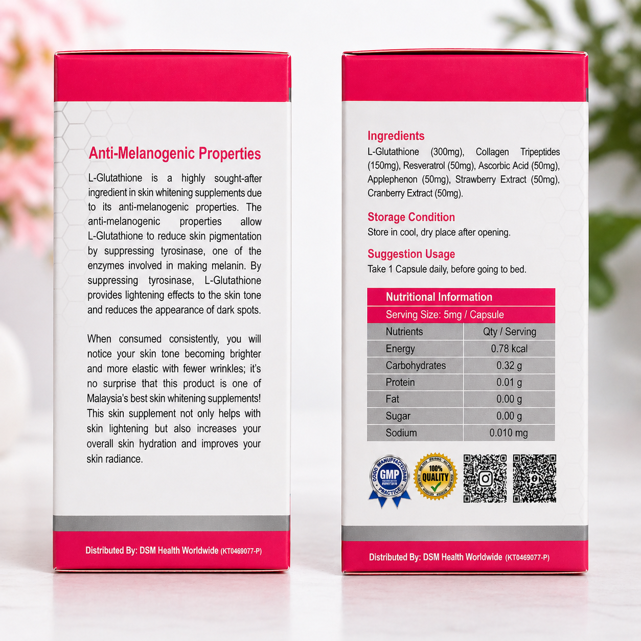Glutathione 5000mg – Helps support skin brightening by reducing melanin formation and promoting clearer-looking skin.
